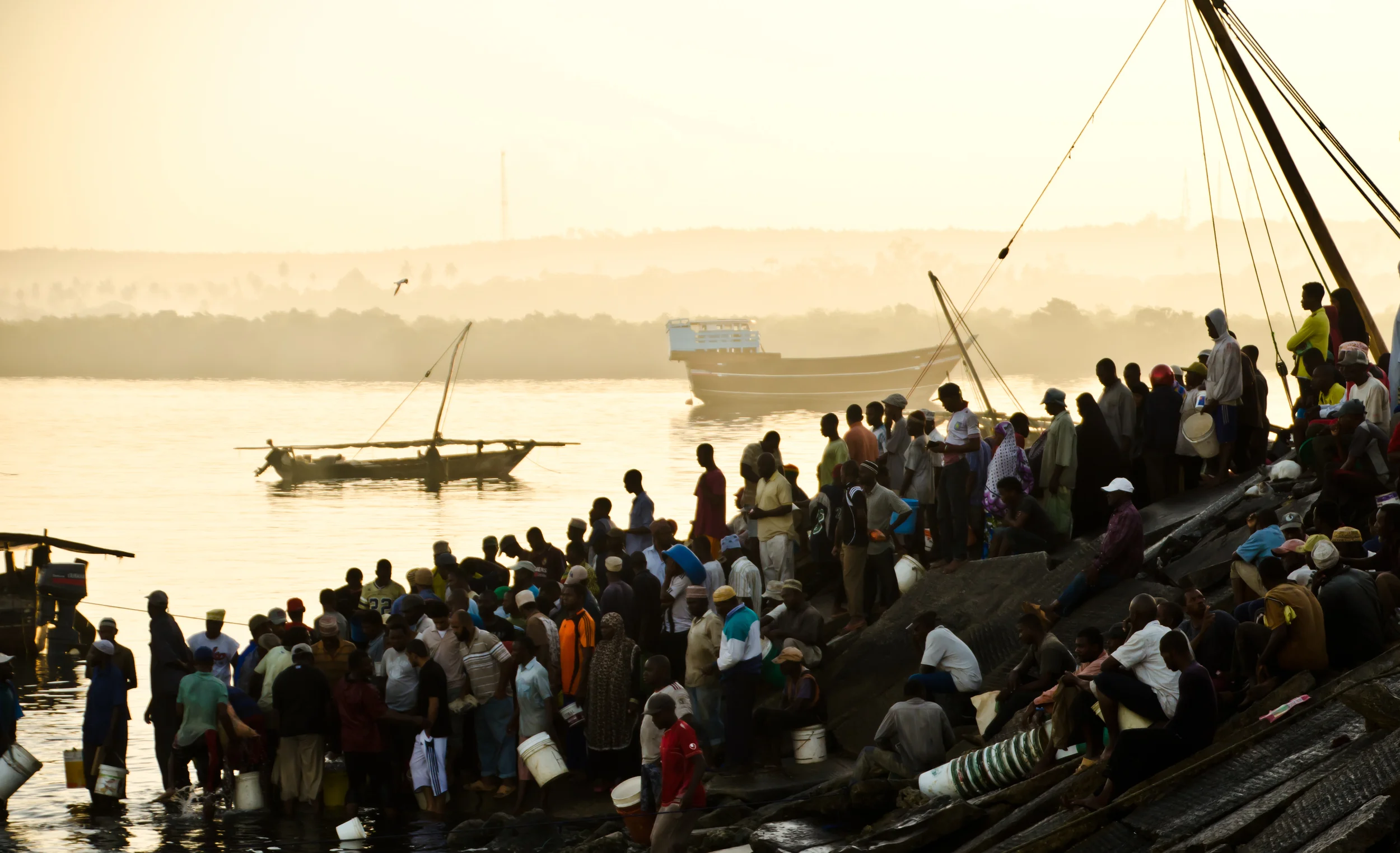 Early morning at a fish market in Stone Town. The sellers line up to buy fish from the fishermen who are bringing in their catch. A hectic scene, but there was a serenity to it all. I wanted to catch the silhouette of figures against the gorgeous morning sky, with layers of landscape in the background.